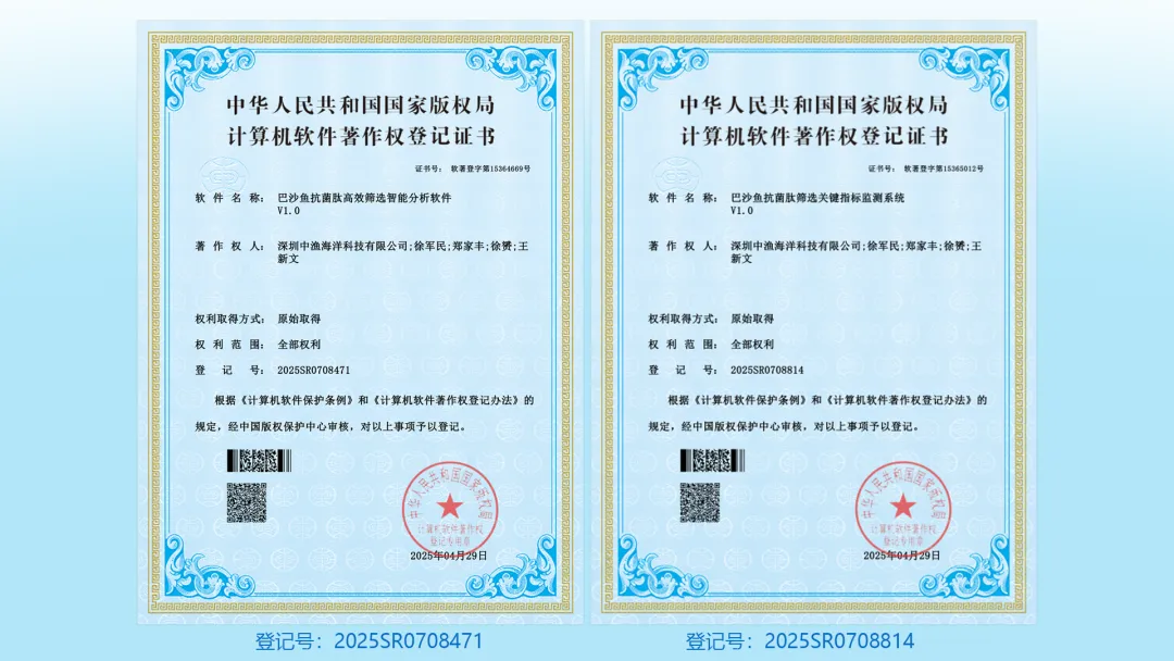 值得一提的是,在功能性蛋白研究方面,中渔科技自主研发的《巴沙鱼抗菌肽高效筛选智能分析软件V1.0》,可快速分析巴沙鱼基因组和蛋白质组数据,高效识别抗菌肽候选分子,为新型抗生素开发和功能性食品研发提供技术支撑。该软件已获得国家版权局软件著作权登记证书。